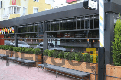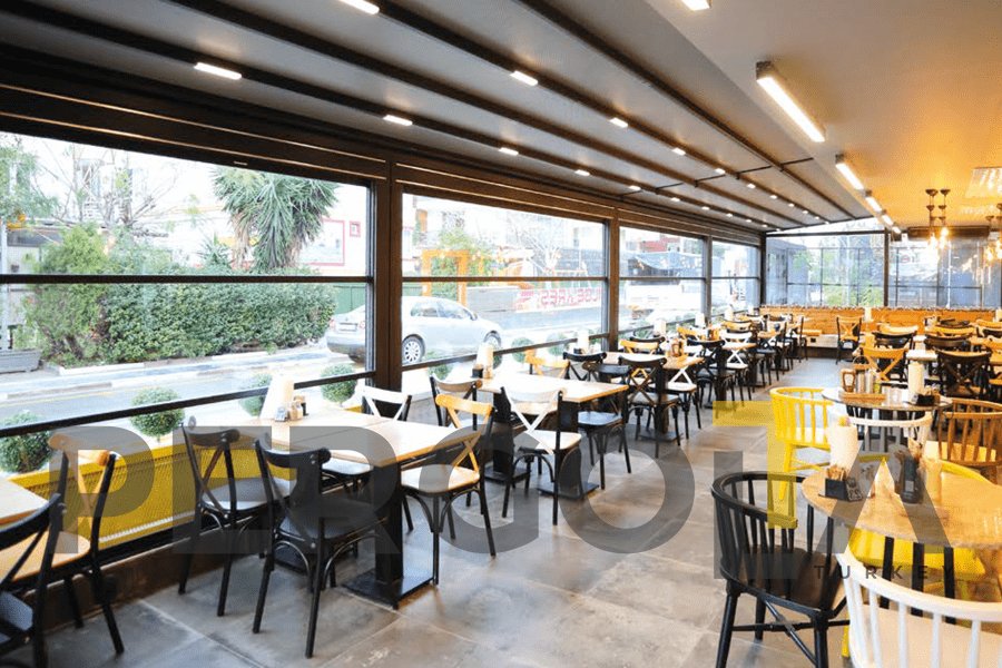 The Motorized Guillotine Glass System—also known as the Motorized Guillotine Window System—offers the perfect combination of comfort, style, and security. Easily controlled remotely, this system is widely used in restaurants, cafes, hookah lounges, terraces, and gardens, enhancing both aesthetics and safety.